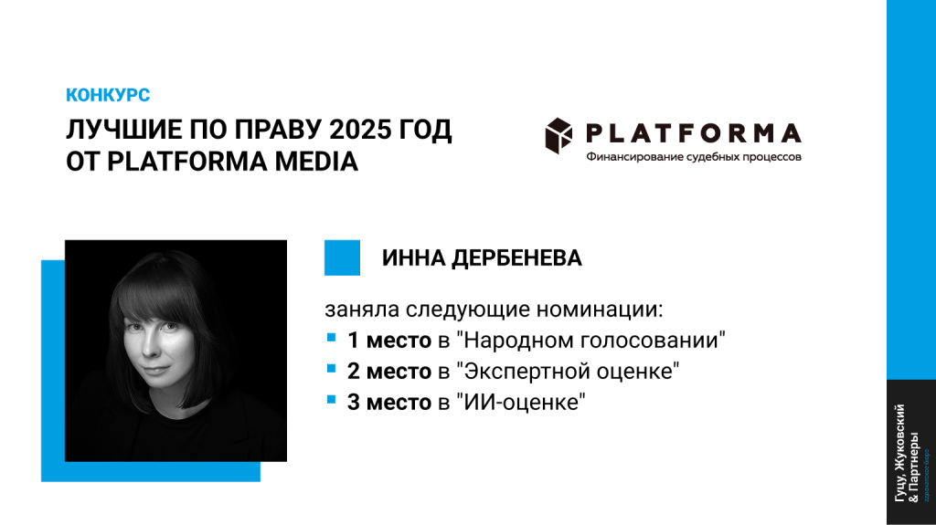 Итоги восьмого конкурса практикующих юристов «Лучшие по праву - 2025», учрежденного сервисом по финансированию судебных споров PLATFORMA